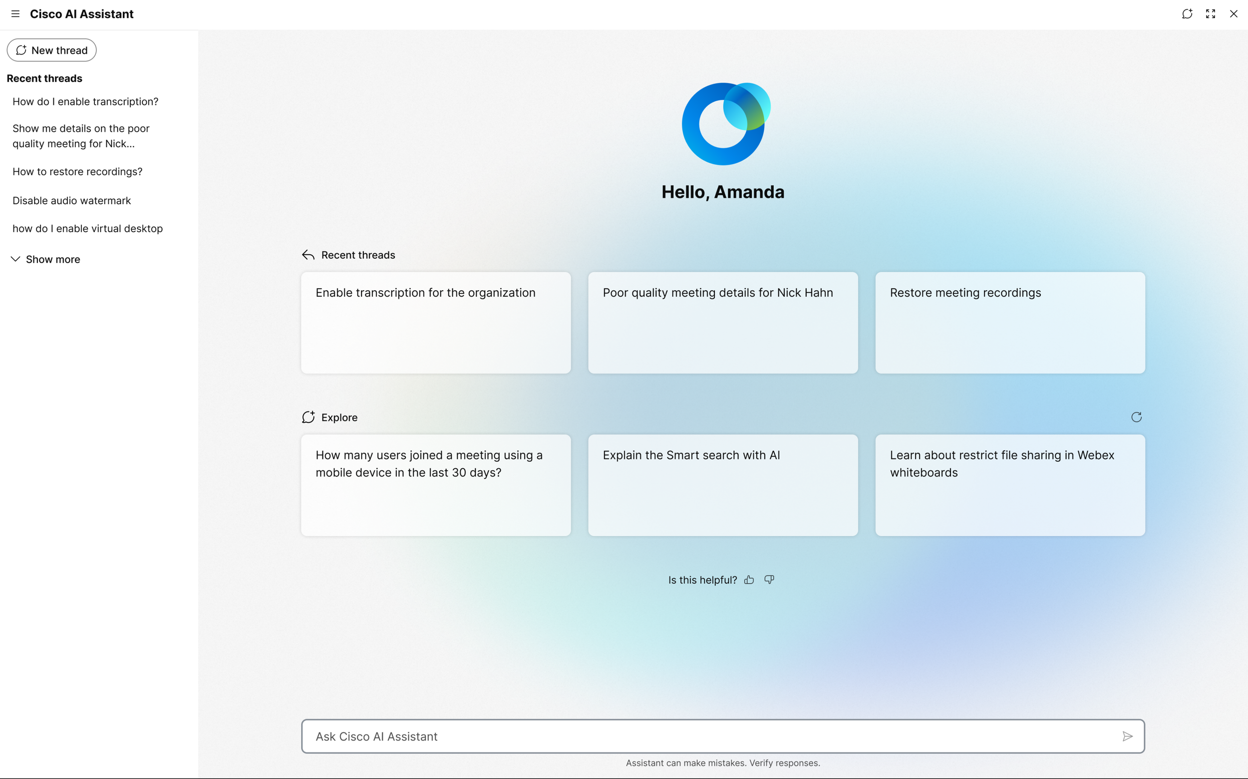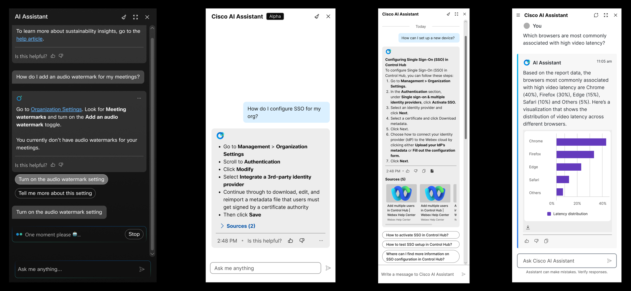 Starting with a groundbreaking product announcement at WebexOne 2023, we hit the ground running to launch a quality AI Assistant for Control Hub by June 2024.