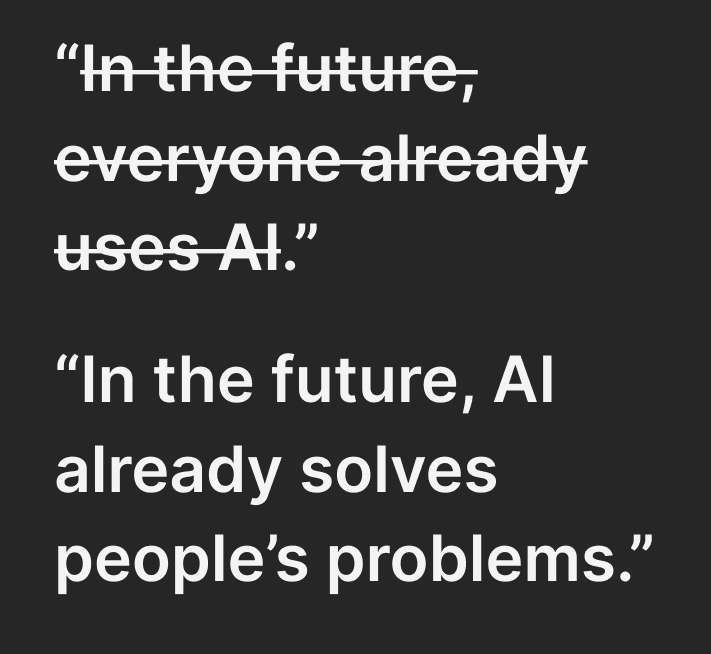I leveraged the research results to challenge some fundamental assumptions with our future vision. We had tried to leapfrog to an assumed future where everyone is already comfortable using AI for all of their tasks, when in reality, customers would only adopt AI products if they solve today’s problems.